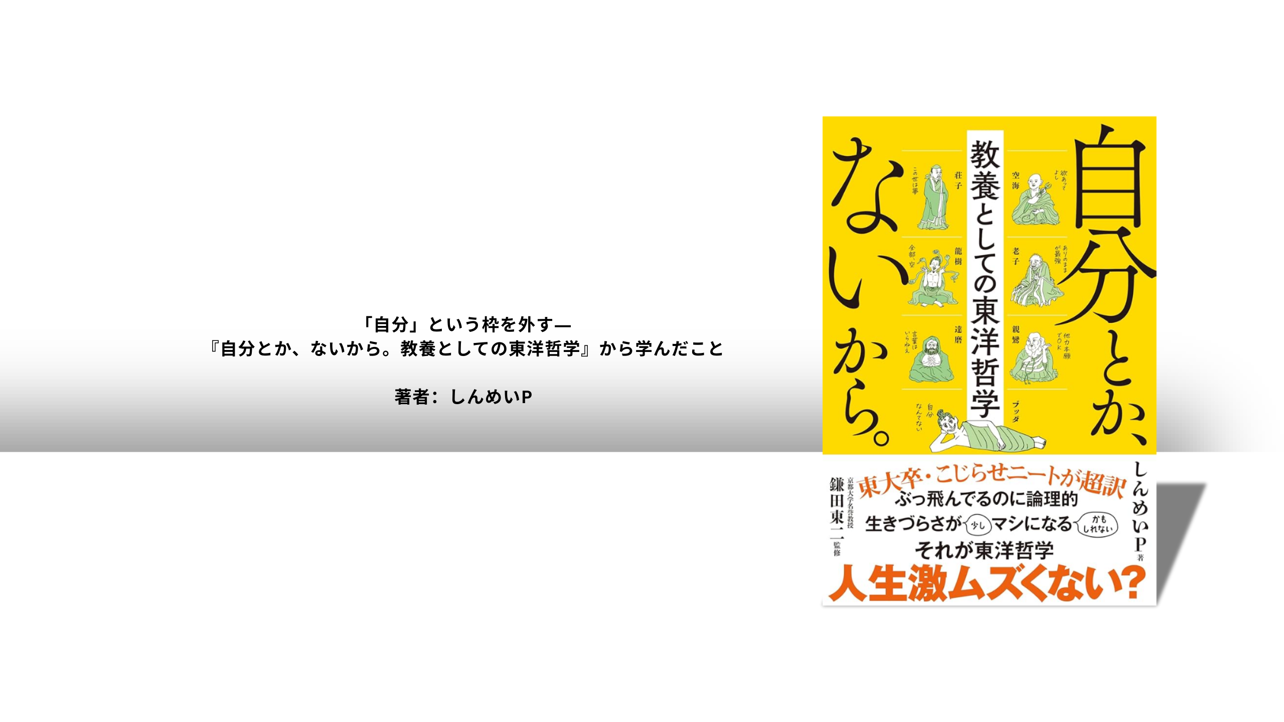 【要約・感想】「自分」という枠を外して自由に生きる|『自分とか、ないから。教養としての東洋哲学』から学んだこと著者:しんめいP