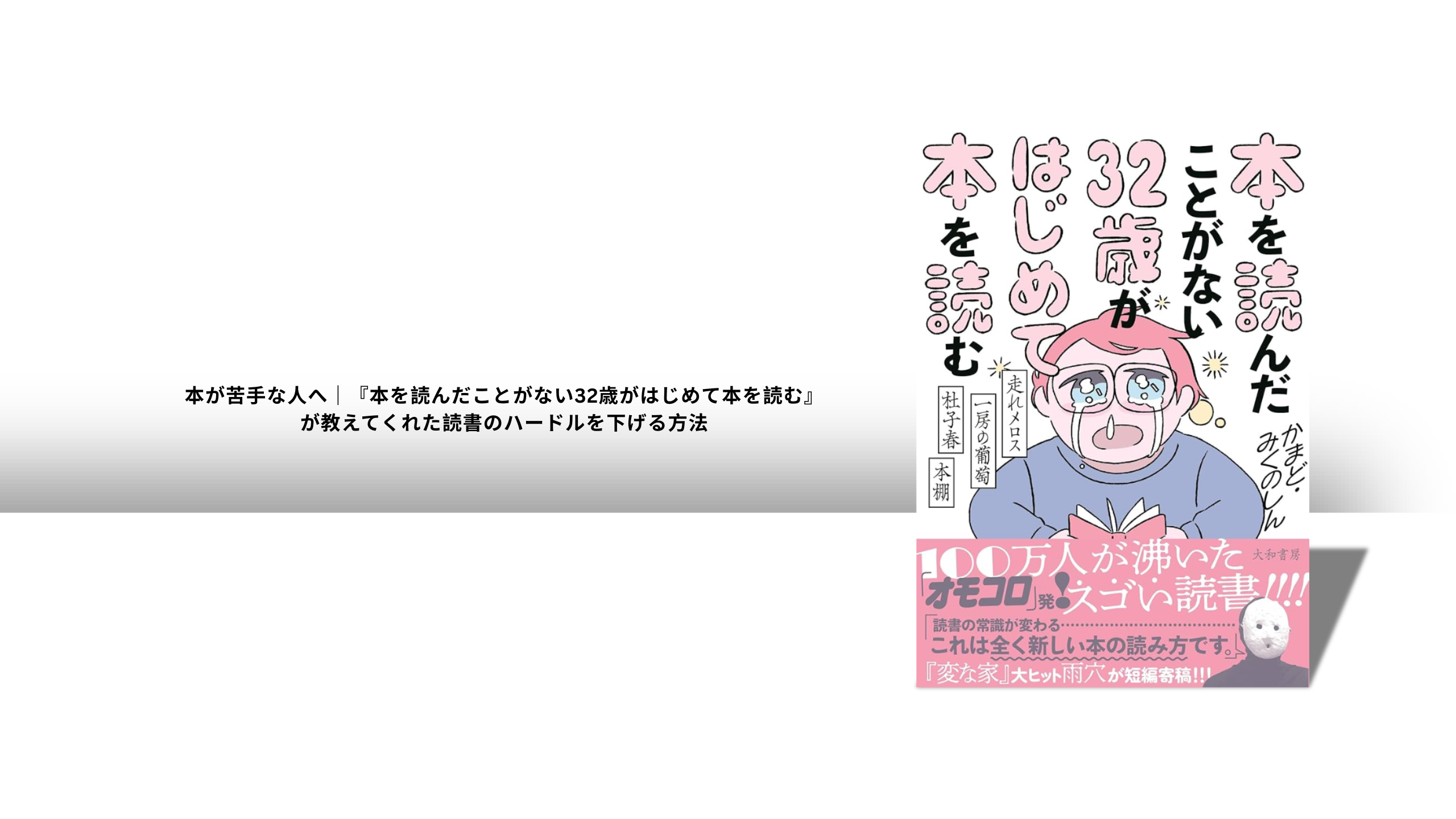 【要約・感想】本が苦手な人へ|『本を読んだことがない32歳がはじめて本を読む』が教えてくれた読書のハードルを下げる方法